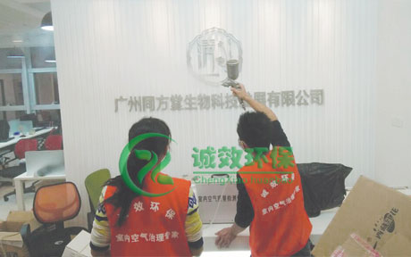 2015年12月20日,广州同方堂生物科技发展有限公司。该公司办公室全新装修,广州除甲醛公司对室内空气进行检测,结果数据显示甲醛和苯超出国家标准3倍,广州除甲醛公司做出治理方案,因有很明显的异味,我公司采用诚效强力异味去除光触媒和甲醛分解光触媒治理,隔日复检数据都在国家标准范围内了。