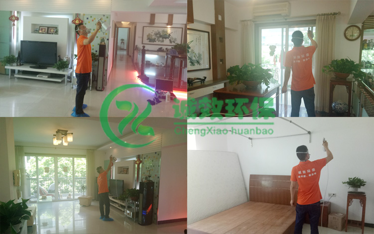 2017年7月13日,蓝天花园(空军小区)位于广州白云大道南739号,业主钱小姐新房装修后放了一个月,为了家人的健康考虑,钱小姐打算在入住新房前要对新房子进行一次装修除味治理。在网络查找、对比、了解到装修除味的方法中,最有效最安全最快捷的方法当属光触媒除甲醛了。通过对多家广州新房除甲醛公司的对比,最后选择了使用诚效光触媒除甲醛的的诚效环保公司上门进行检测,钱小姐按照要求提前12个小时关闭门窗后的检测数据是:甲醛超标2倍、苯系物超标1倍、TVOC超标2倍。