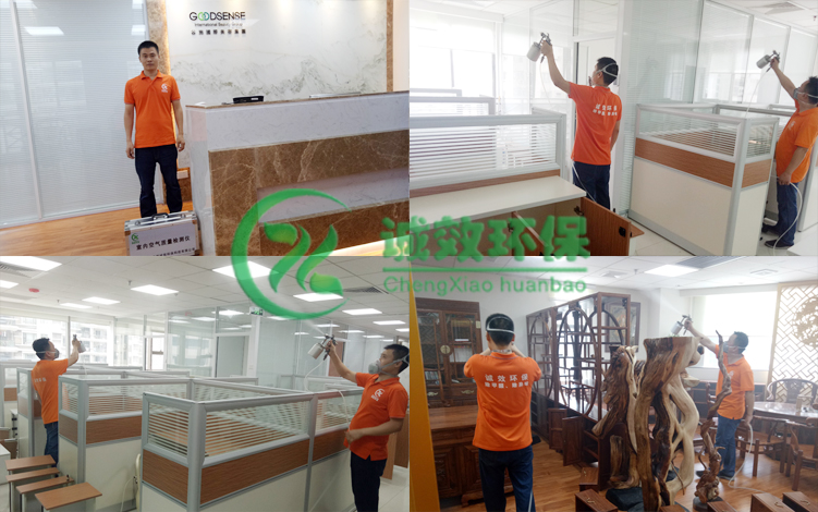 2017年6月30日,广州谷施化妆品有限公司,位于广州市天河区华庭路4号富力天河商务大厦;新办公室装修完毕,新装修后存在明显异味,公司负责人为了员工的健康着想,决定找专业的除甲醛公司进行室内空气净化。经过对除甲醛公司的相关资质、施工案例、产品来源、检测报告、服务承诺、付费方式等几个方面的综合比较,最后,使用纳米二氧化钛光触媒除甲醛的诚效环保公司广州写字楼除甲醛公司成功入选为该公司提供室内空气净化服务。装修除甲醛最好办法是喷涂纳米二氧化钛光触媒。诚效环保公司专业的技术工人在墙壁、地板、木制柜子、办公家具等污染源的表面进行系列喷涂纳米二氧化钛光触媒,有光时分解无光时吸附。真正达到全面、彻底、安全、高效的目的。