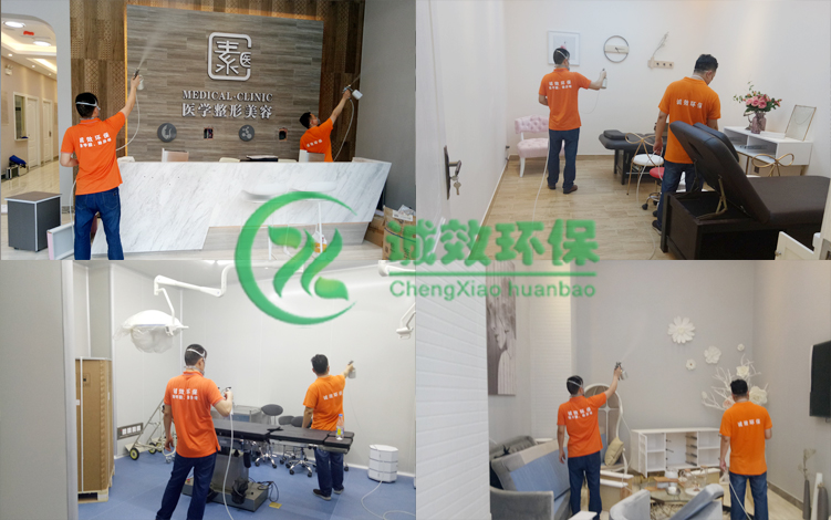 广州诚效环保除甲醛专业技术人员对该美容院进行了全面细致的净化处理,特别是针对手术室对洁净空间的要求,技术人员又配备了专业风机和风管来克服不通风的困难。经过综合治理最终取得了良好的效果,经权检测,素医医学整形美容院空气指标均达到国家标准。