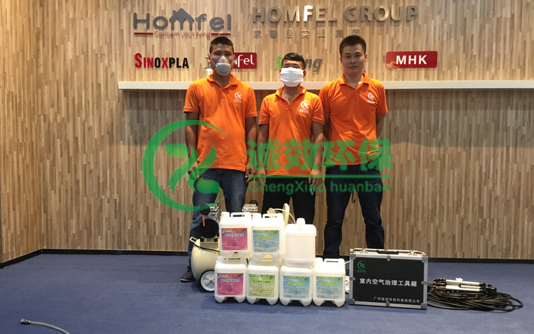 2017年9月23日,广州家馨居实业集团有限公司,位于番禺区钟村东盛路113号;展示厅装修结束,这两天同事们在摆放样品时感觉身体不适,在里面待久了还会流眼泪,经过咨询了解到可能是室内有害物质超标,馨居实业集团有限公司领导非常重视员工身体健康,找到我公司进行现场勘查,发现确认多处甲醛污染释放源,经过检测,展厅甲醛含量在0.6左右,超出国家标准数值5倍左右,广州专业除甲醛公司诚效环保公司除甲醛工程师根据我公司360度治理方案,全方位深层次施工。