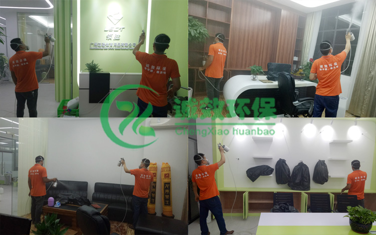 2017年10月1日,广州劲迈体育用品有限公司,位于广州市天河区中成路301号大院4号楼。办公室已装修完毕,邀请广州办公室除甲醛公司广州诚效环保公司的检测员到现场勘查并设点采集室内空气,经检测室内空气中的有害气体均属于超标,根据室内的装修情况和通风环境,技术人员合理的制作施工方案。结合目前市场状况针对家具、人造板材经油漆处理的饰面材料、皮革、布料、胶水涂料等污染源的源头治理,使用我公司专有的光触媒空气净化液产品,针对室内所有污染源进行科学的室内空气治理方法,长时间的清除装修污染,不会出现反弹现象。