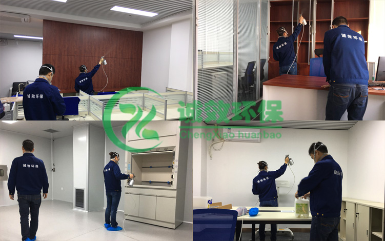 2018年3月10日,佛山市铬维科技有限公司(广州分公司),位于广州市天河区高普路京华信息大楼西座,办公新区装修后受到装修污染问题的困扰,该公司办公区新装修,在装修完以后,进入新的办公区,各种装修异味严重,室内气味非常刺鼻,且由于办公区的环境相对封闭,无法靠通风来缓解异味,在办公区放置了绿色植物,植物几天就枯黄,公司负责人请甲醛检测架构进行了甲醛检测,经检测后,甲醛和TVOC含量分别超标了4~5倍,超标严重,尤其是实验室由于空间相对密闭,甲醛问题还无法通风散出去。担心装修污染物影响办公人员的安全问题,特意请广州甲醛治理诚效环保公司进行甲醛治理工作,根据诚效环保公司技术人员的实地考察以及单位装修特点,再结合先前检测的数据报告,我们为其做了详细的施工治理方案,得到铬维公司领导审核,同意并认可诚效环保公司的施工治理方案。