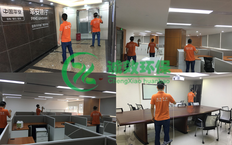 2018年5月14日,平安银行,位于广州珠江新城国门酒店12楼,办公楼装修结束后对方委托诚效环保公司对室内进行了空气检测和治理。
