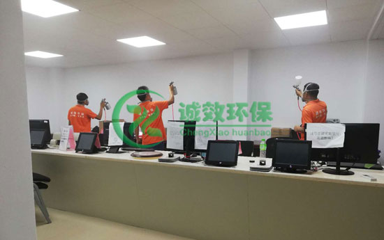 2019年8月12日,广州市白云区人民政府黄石街道办事处,位于广州市白云区黄石东路88号;办公大楼装修完毕负责人邀请白云区除甲醛公司诚效环保公司对1500平方的办公大楼实施了空气治理;诚效环保公司使用光触媒产品和技术对墙壁、地毯、地板、桌椅、家具等进行了3~4遍喷涂治理;治理了室内甲醛、苯、甲苯、二甲苯、TVOC等有害气体。除甲醛治理前:室内异味较大,不适合人长期待在室内。除甲醛治理后:室内异味减轻,负责人邀请第三方具有CMA资质机构检测,各项指标都合格。