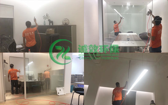 2019年9月11日,广州创意单元设计事务所有限公司位于广州市海珠区工业大道北路67号26号楼,办公室装修公司领导积极重视室内空气质量,指示此次除甲醛工程务必做到严格筛选、优中选优,室内空气一定要让员工放心!经多次甄选海珠除甲醛公司中标此次除甲醛工程。办公桌椅较多,工程师们需要仔细的将光触媒和甲醛清除剂均匀的喷涂在柜子的内部,抽屉的背部等,才能准确渗透进板材内部,进行针对性的除醛治理。